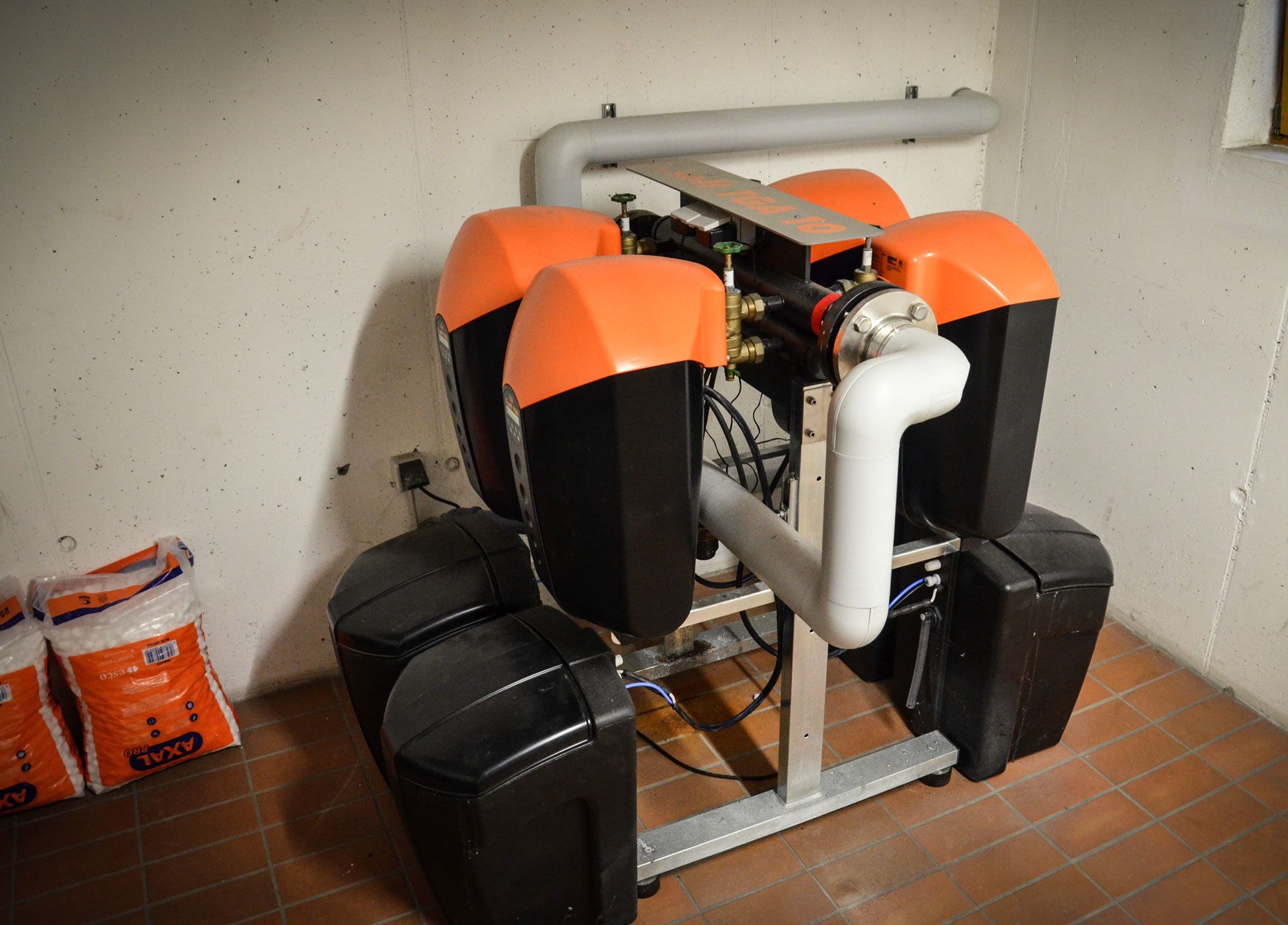 Durch einen Ionenaustausch wird der Kalk aus dem Trinkwasser gebunden und durch die Anlage ausgespült. Dafür benötigt die Anlage Salz.